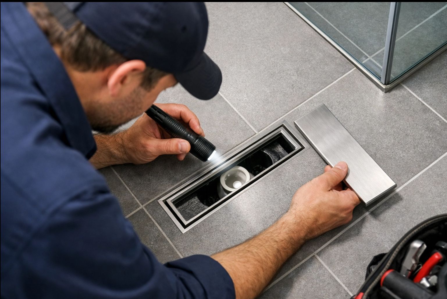 - Biofilme e sujidade no ralo — cabelos, sabão e resíduos acumulam-se e geram mau cheiro.